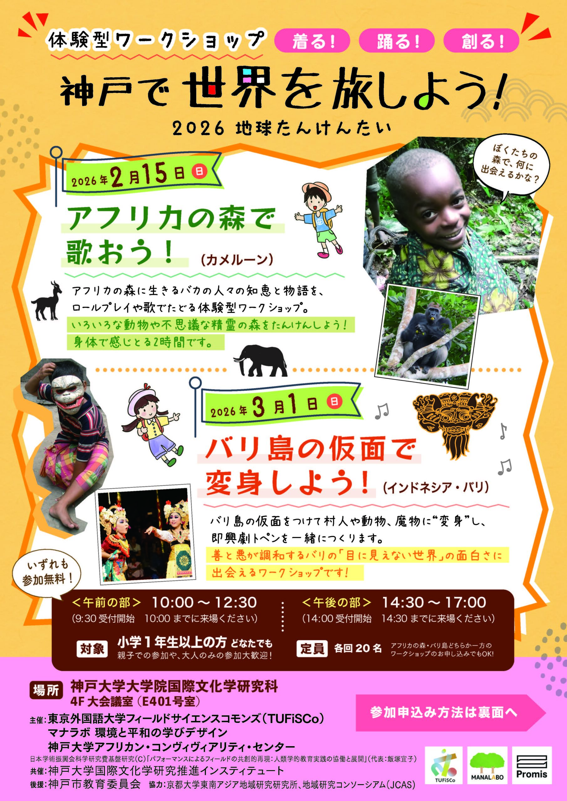 Hands-on Play-acting Workshop "Dress! Dance! Create! Travel the World in Kobe! Chikyu Tankentai 2026" Let’s Sing in an African Forest! (Cameroon)
